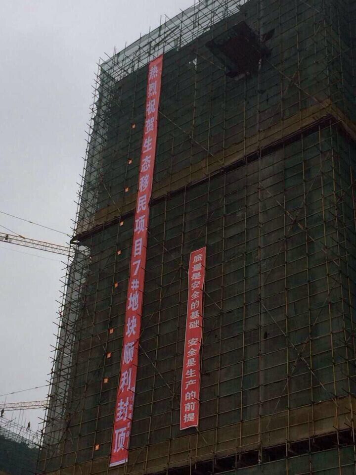 由我公司投资的龙泉驿区茶店镇白果村、民主村统筹城乡生态移民富民惠民项目(250000平方米工程),#1标段于2014年5月22日顺利封顶。